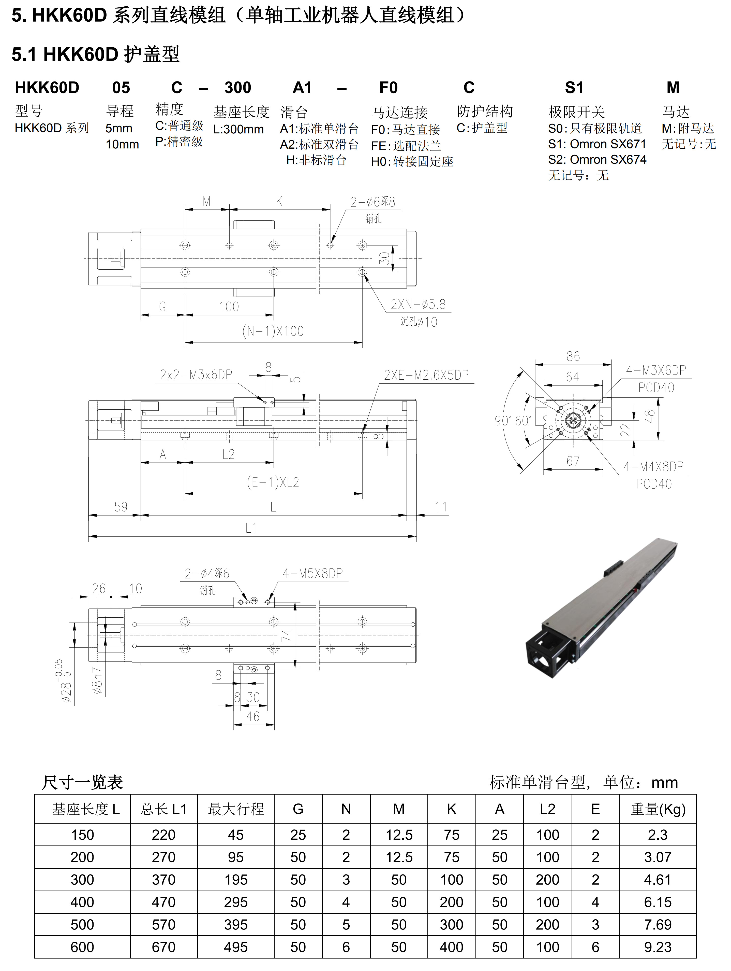 HKK60D系列直線模組2D圖檔