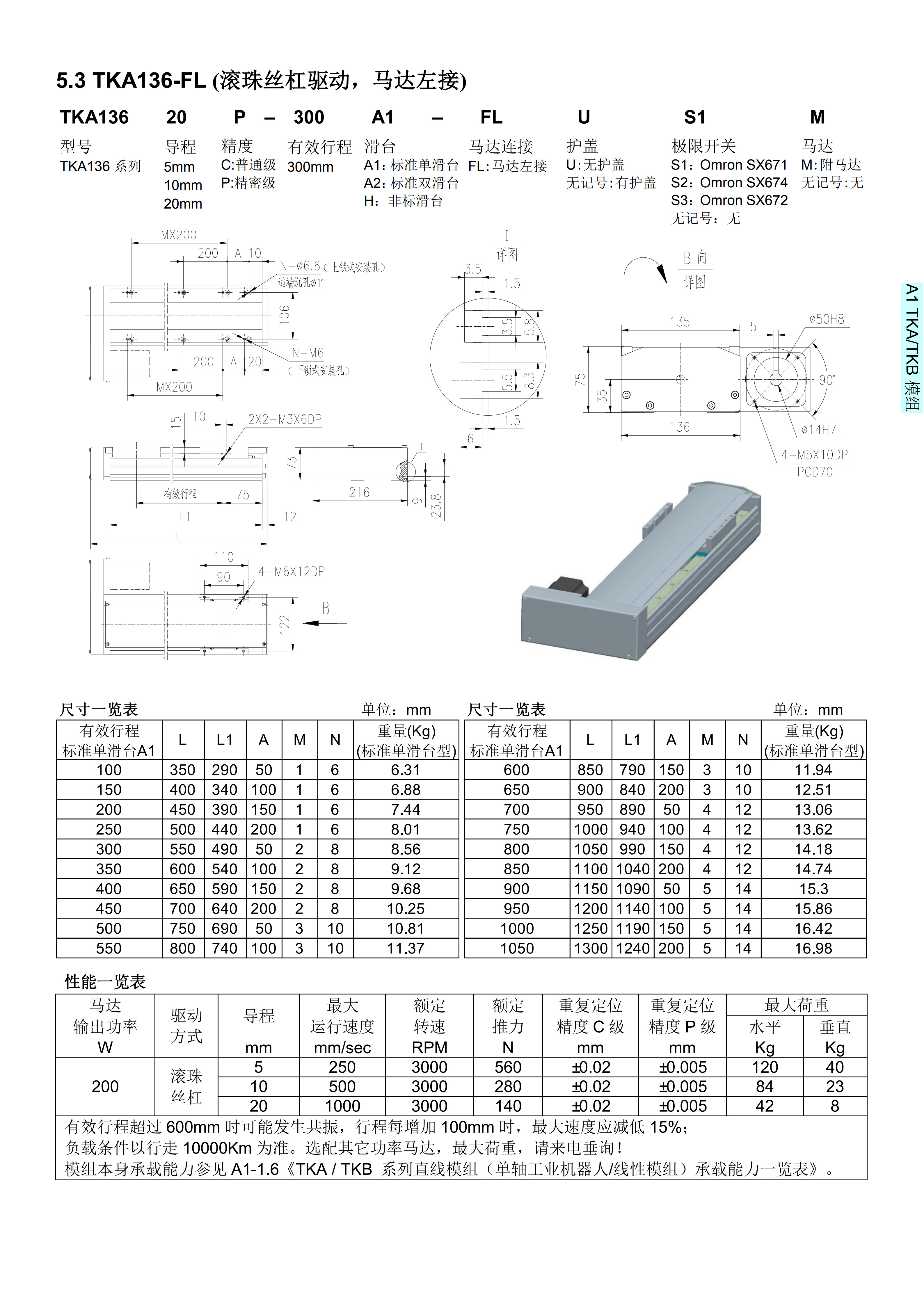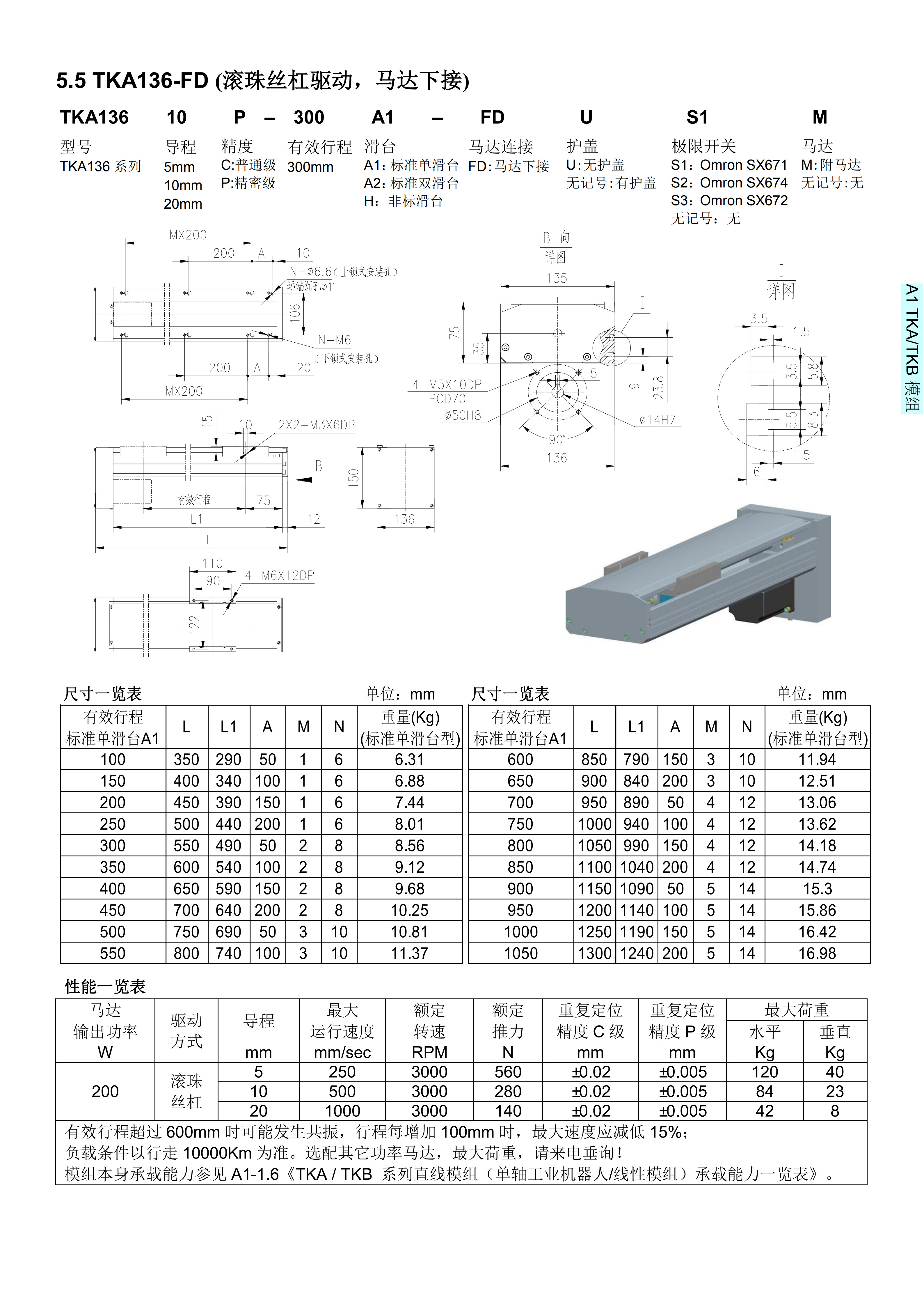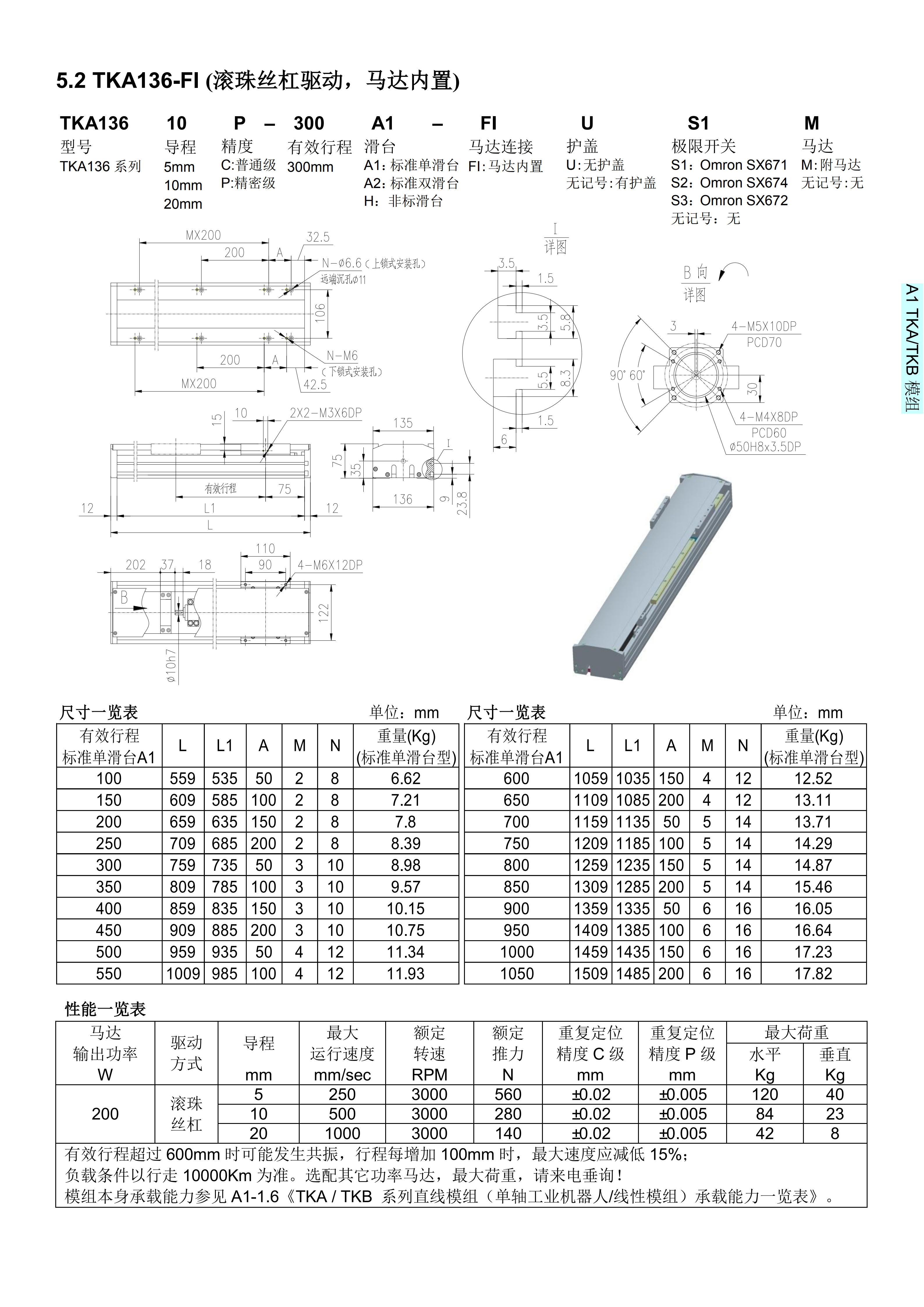 TKA136系列直線模組(單軸工業(yè)機器人/線性模組)
