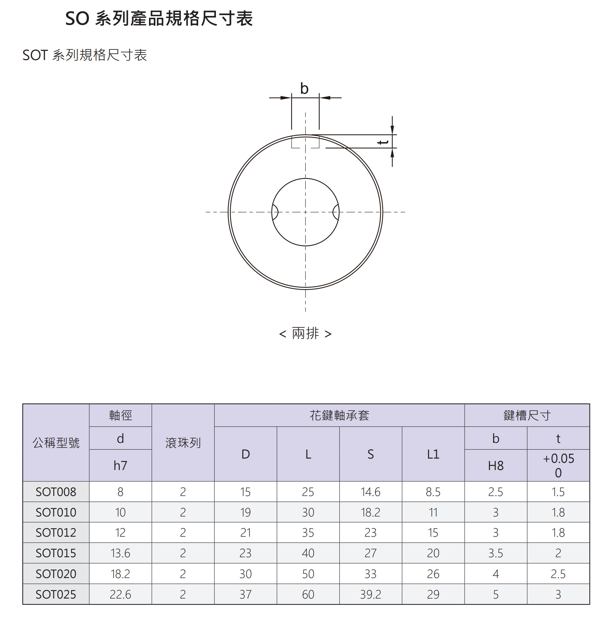 SOT系列滾珠花鍵2D圖檔