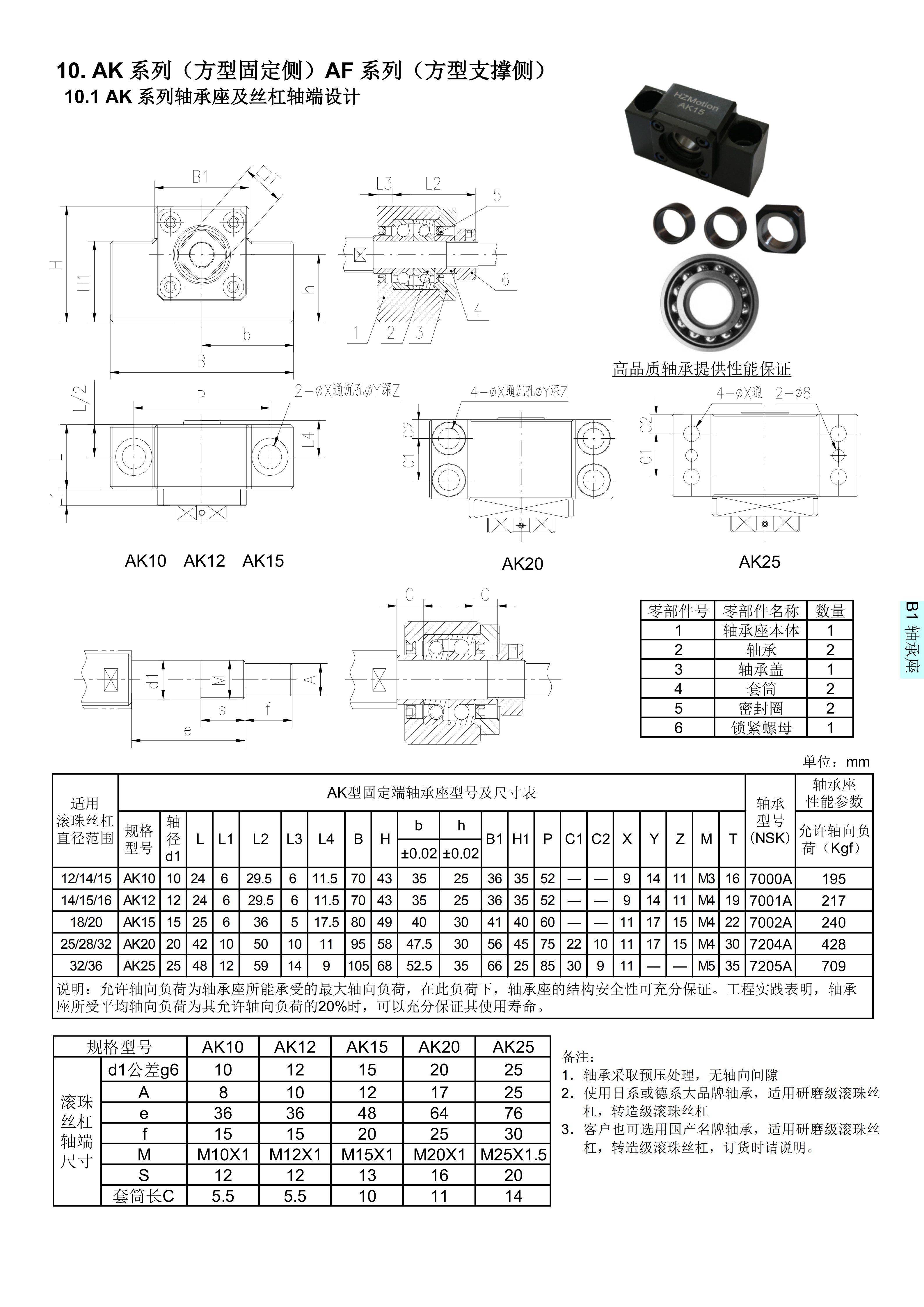 公司專業(yè)研發(fā)和生產(chǎn)世界著名廠商全型號滾珠絲杠專用精密軸承座,并在國際通用型號基礎(chǔ)上,首創(chuàng)了TAC系列重載精密滾珠絲杠專用軸承座。各產(chǎn)品型號與臺灣嵩陽SYK,日本THK,日本NSK,MISUMI,德國Rexroth相應型號通用。AK系列具體型號:AK10、AK12、AK15、AK20、AK25。