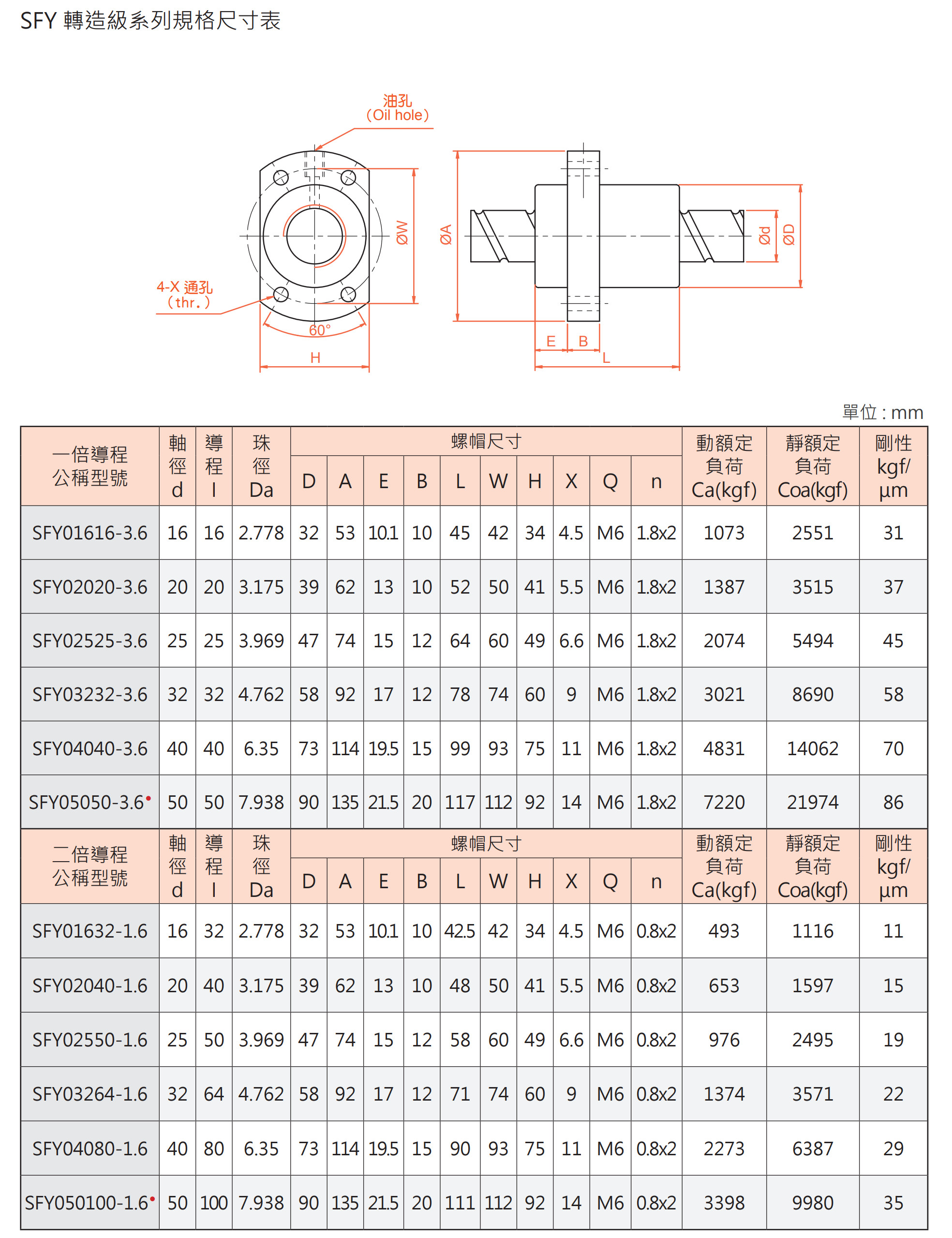 全球傳動-臺灣TBI-SFY系列TBI轉(zhuǎn)造級滾珠螺桿