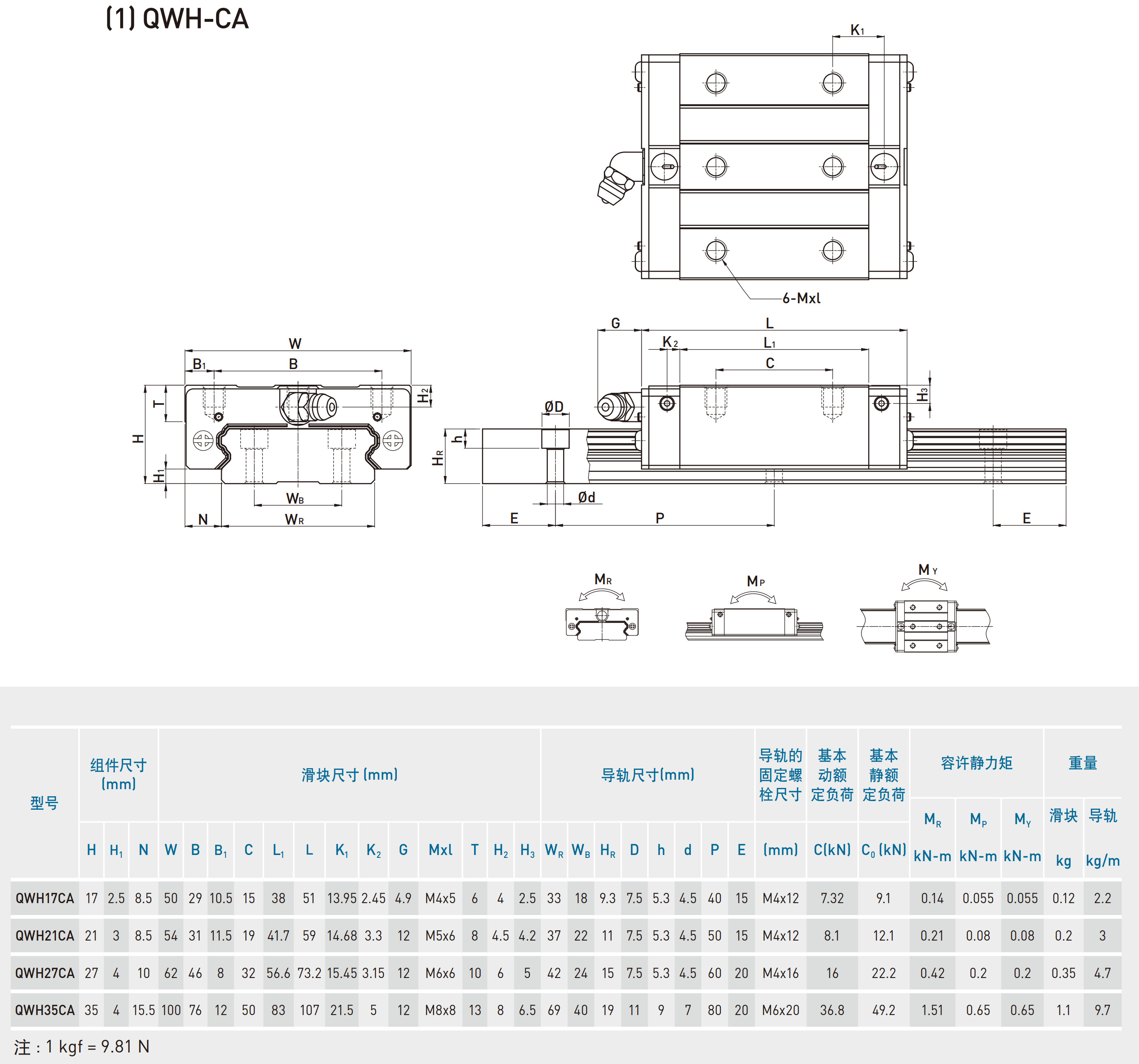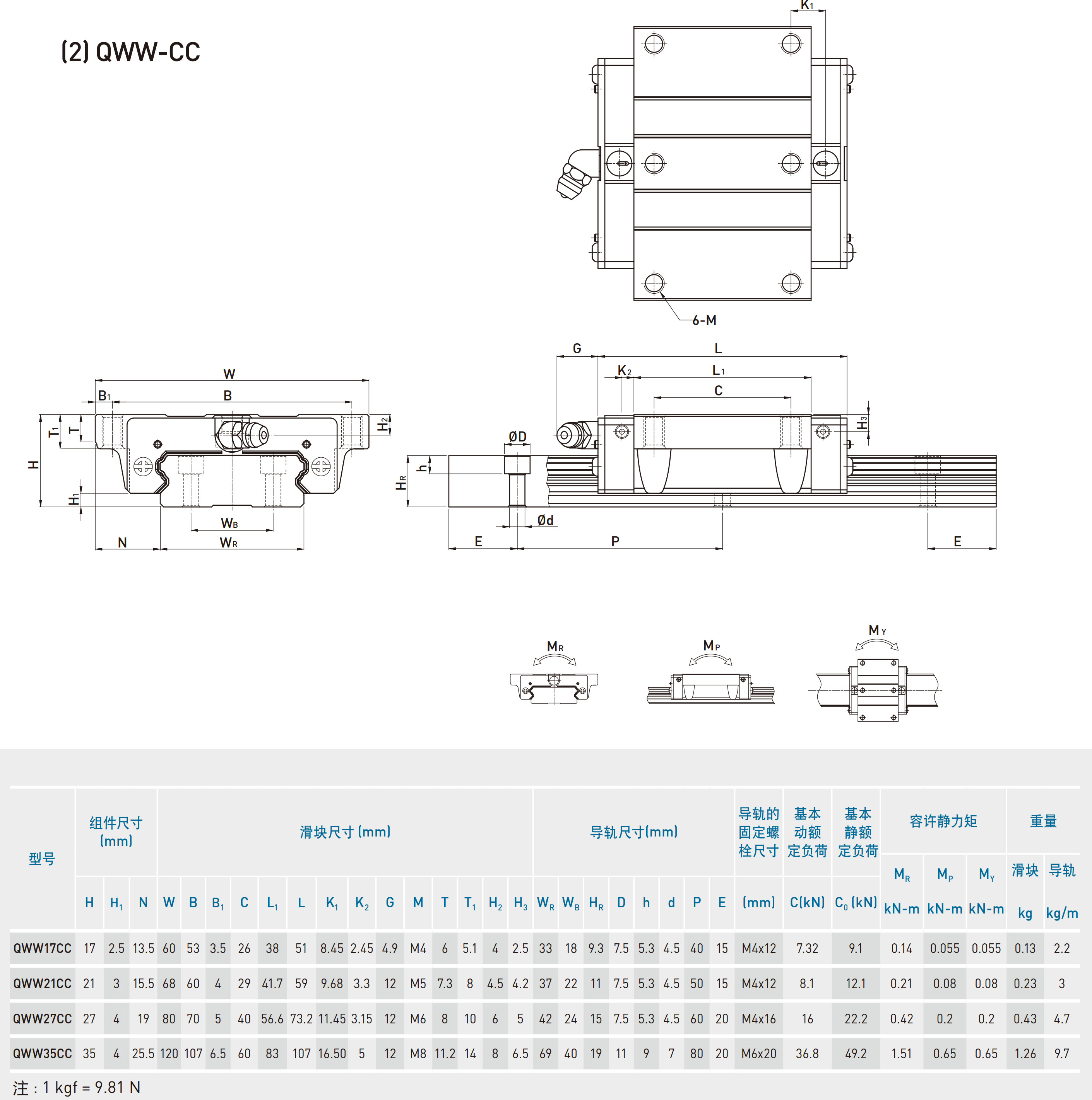 上銀-HIWIN-QW系列-靜音式寬幅滾珠直線導(dǎo)軌