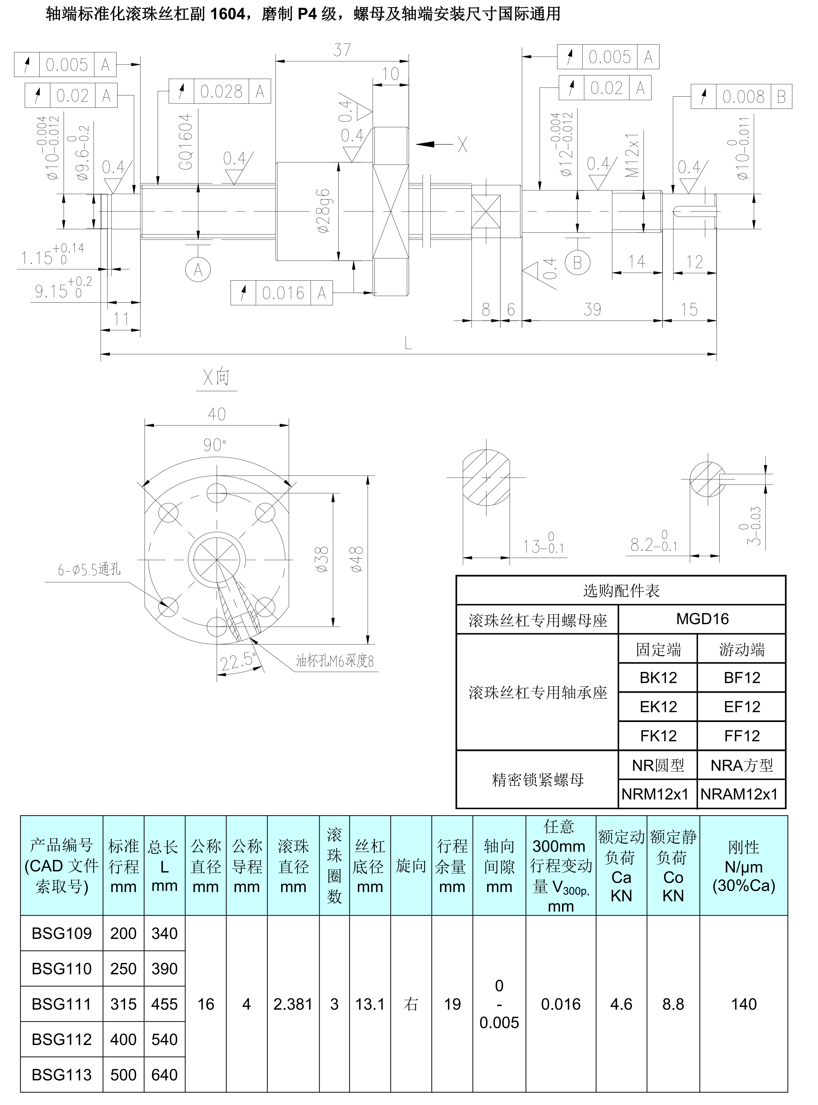 1604軸端標準化磨制P4級滾珠絲杠副