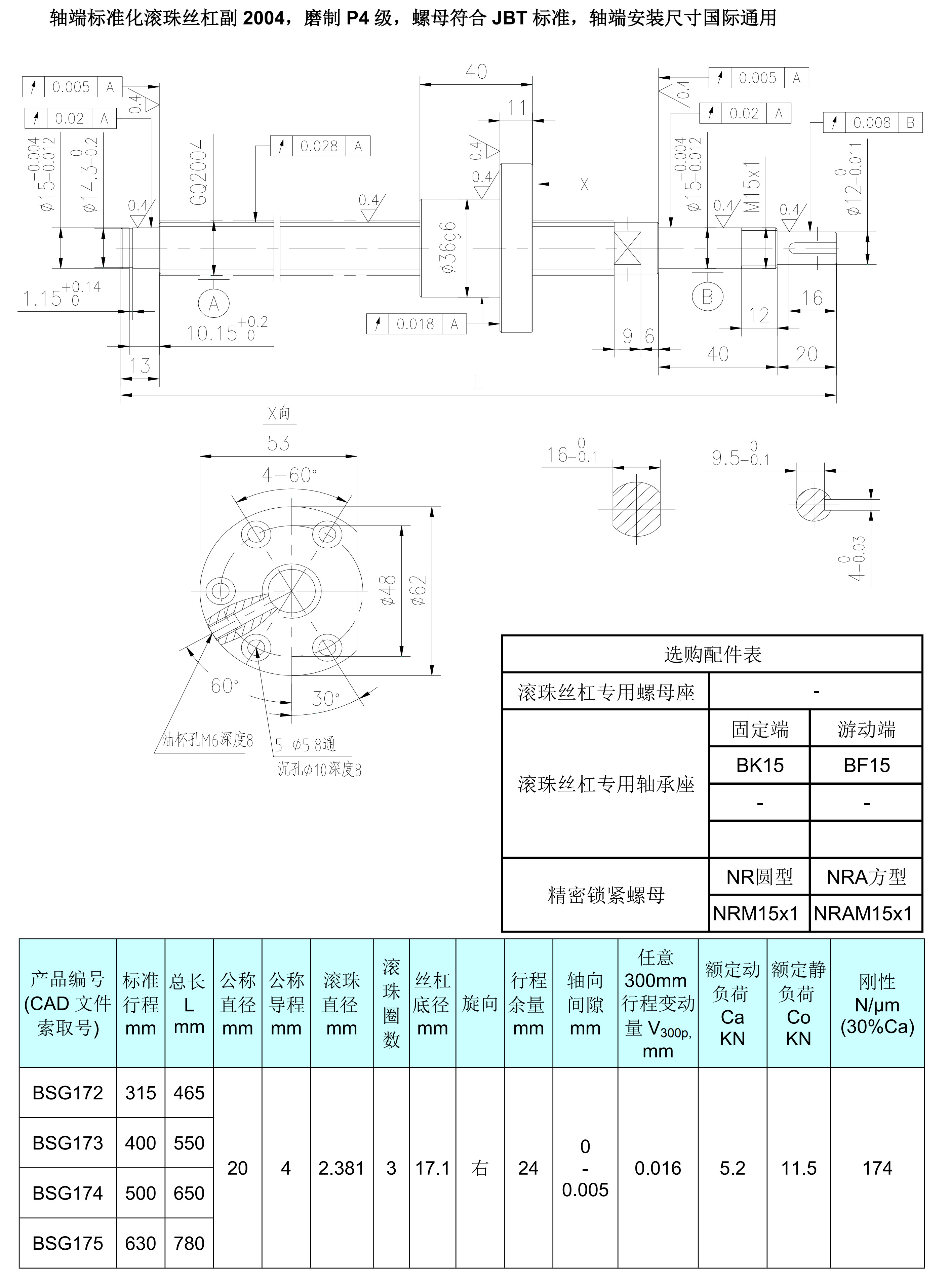 2004軸端標準化磨制P4級滾珠絲杠副2D圖檔