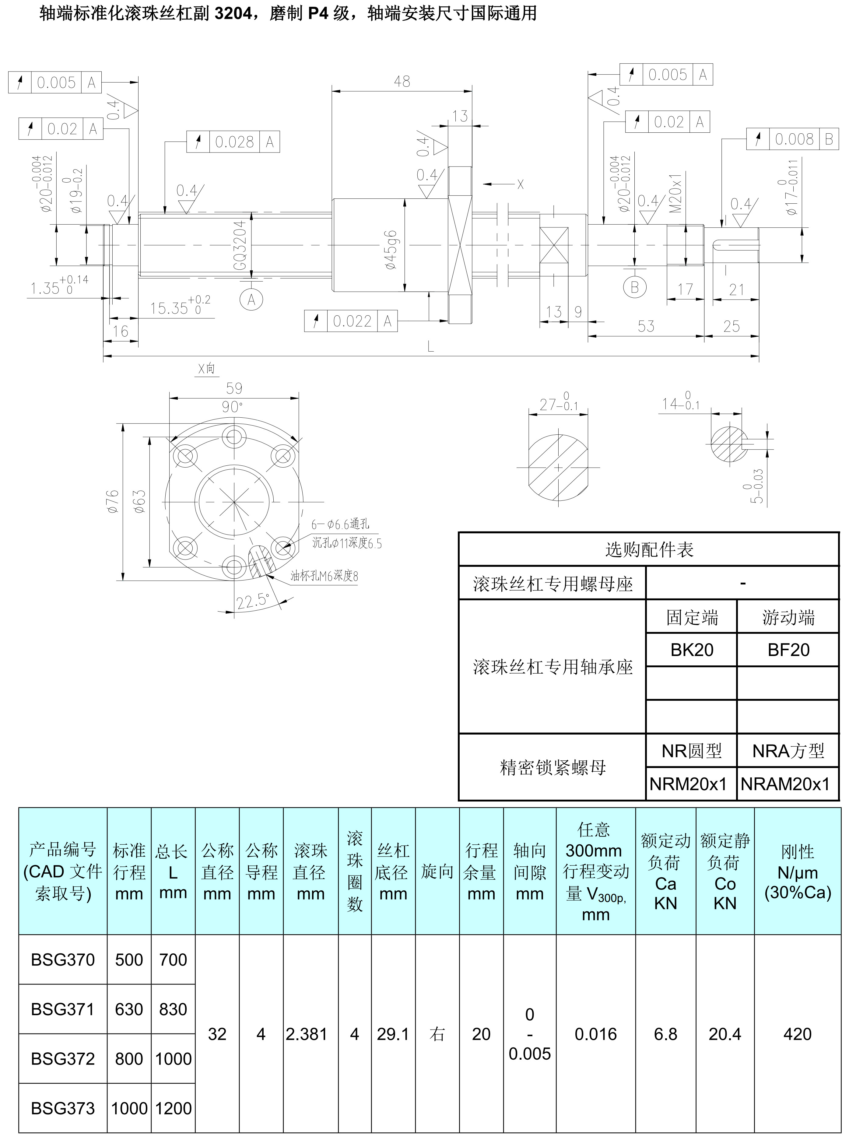 3204軸端標準化磨制P4級滾珠絲杠副2D圖檔