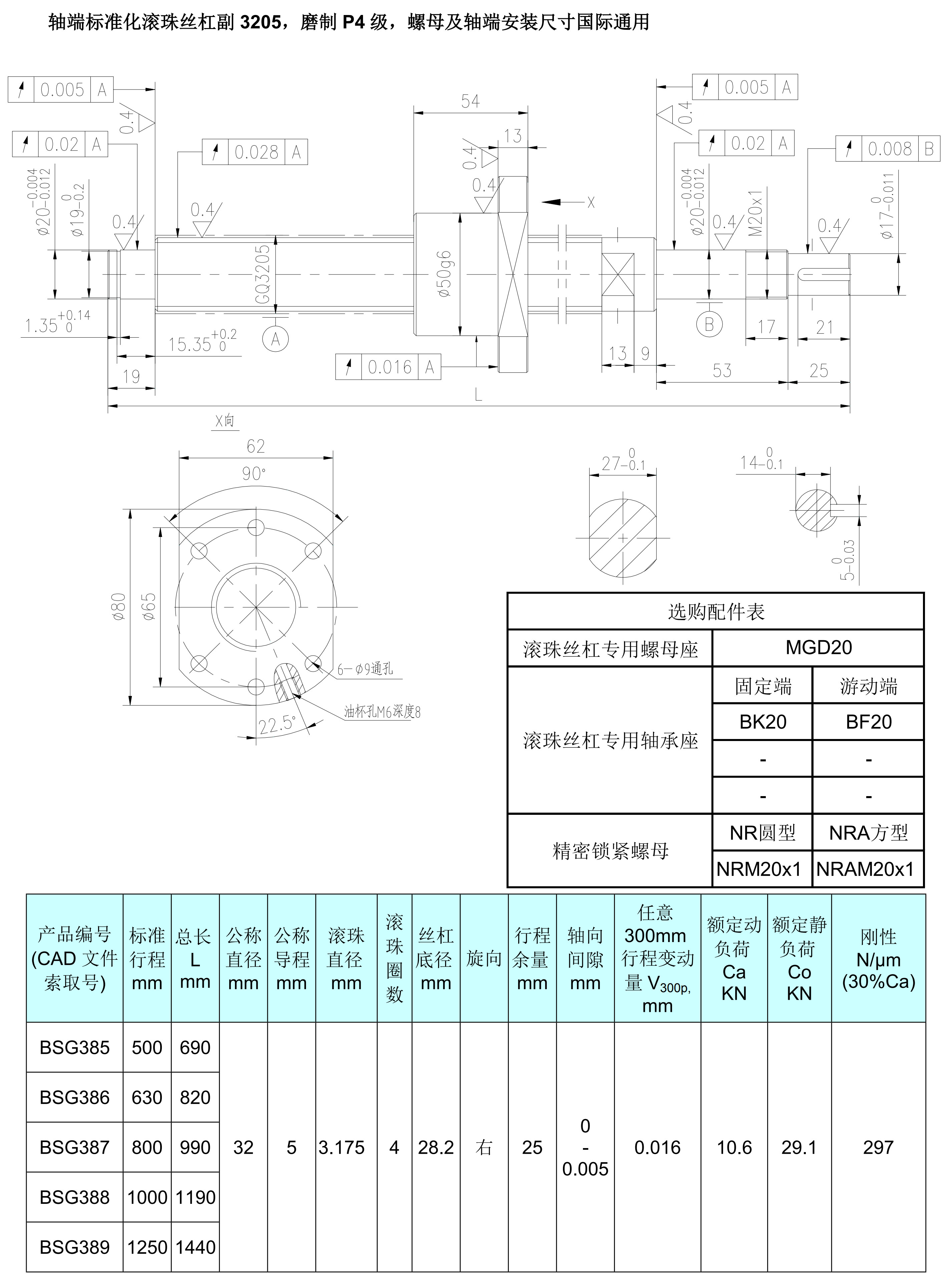 3205軸端標(biāo)準(zhǔn)化磨制P4級(jí)滾珠絲杠副2D圖檔
