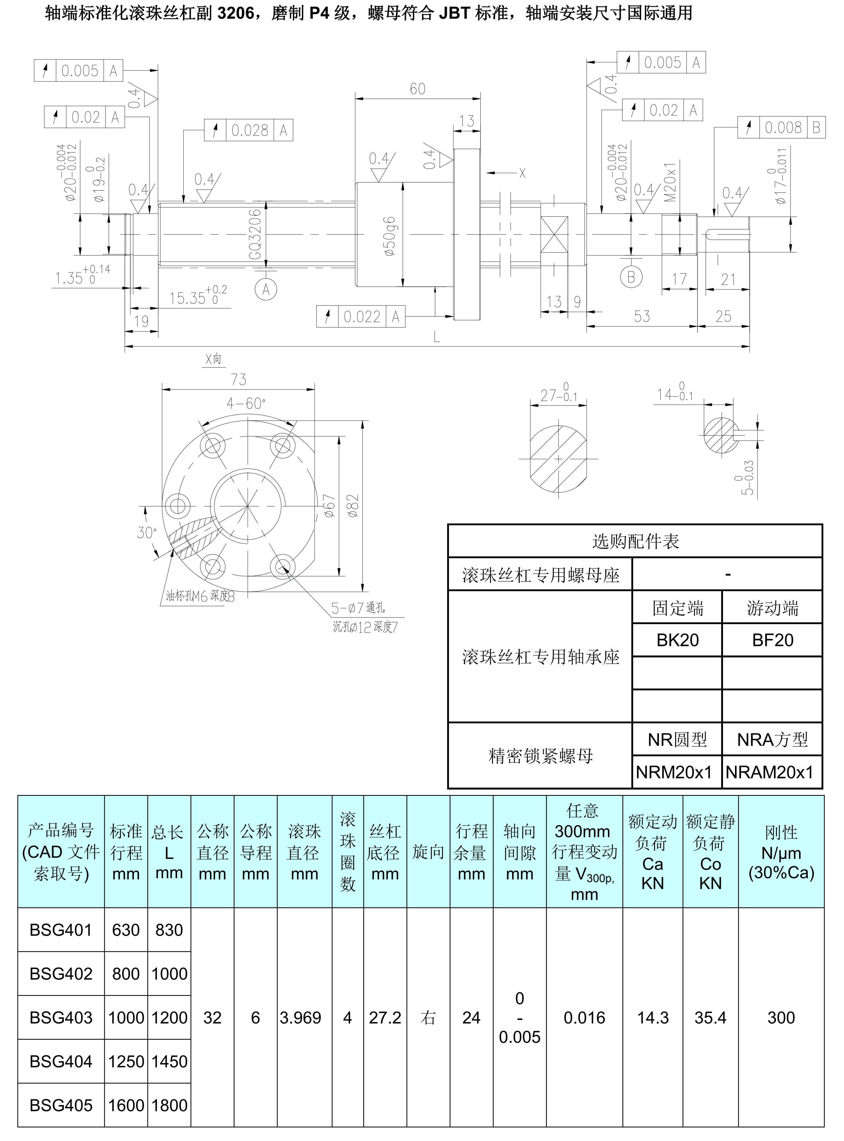3206軸端標(biāo)準(zhǔn)化磨制P4級滾珠絲杠副