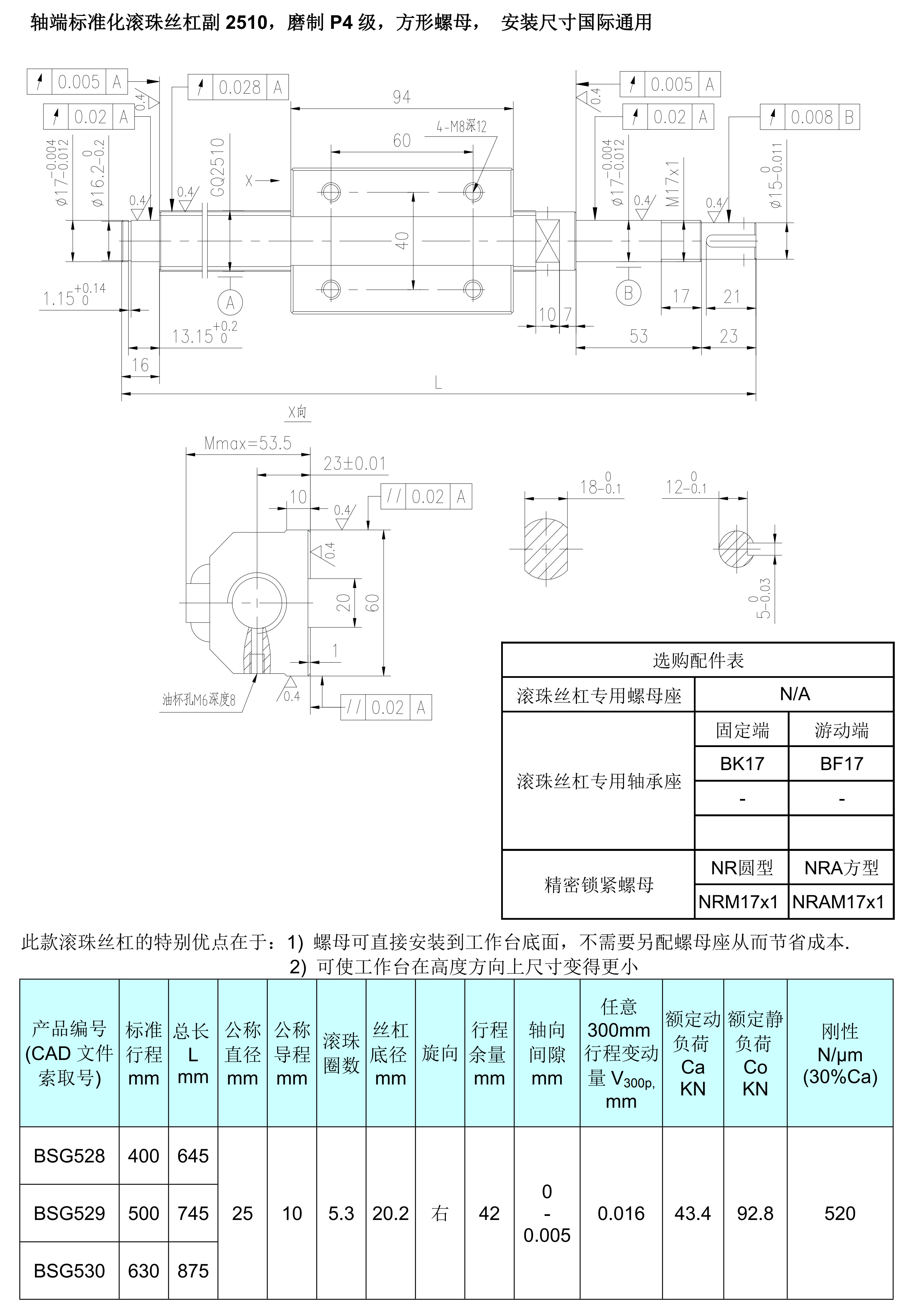 2510方形螺母,軸端標準化磨制P4級滾珠絲杠副